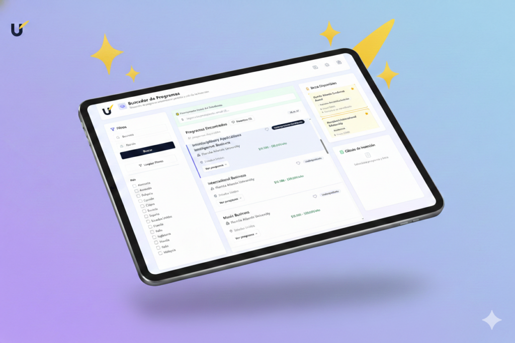 Selecciona país, presupuesto, programa (carrera, maestría, otros), área de estudio y más filtros inteligentes.